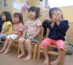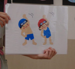 プール開きのお話では、絵カードを使ってプールをするときのお約束を聞いていきました。