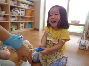 にじぐみさんは、カード遊びやおりがみ、おままごと🥄