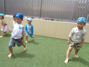 昨日の天気予報では、雨との予報でしたが、みんなの楽しみにしていた思いが、届いたようで(七夕ですものね♡)雨は、降りませんでした!そして、今年初のプール遊びのスタートです!
