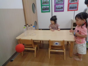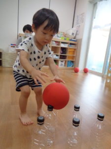ふたば組さんは、お部屋でボーリング大会が開催されていました。