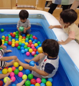 ボールを入れて、ボールプールにしてみんなで遊んだり、ゴロンと転がって・・・温泉気分かな?😄