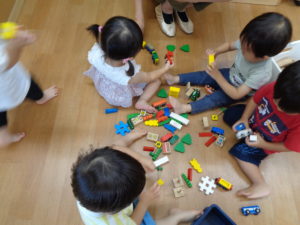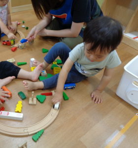 その後は、お部屋でブロックや木製の電車で遊びました🚃