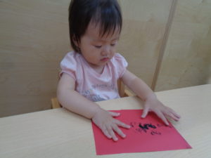 指でトントンしたりして、果物の種をイメージしたものを作りました!
