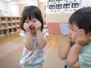 リトミックでは、お友だちとお顔をギューッとして、あっぷっぷしてみましたよ🎵