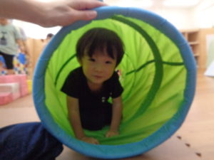 室内遊びでは、トンネルをくぐったり、階段を上り下りしたりして、