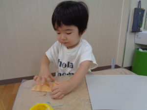 のりを指につけて、ペッタンペッタンと貼っています☆