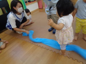 保育者がトントンしたり自分でトントンしたりして楽しみました。