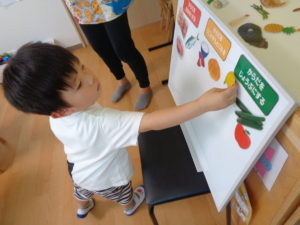 考えてみて自分の思ったところに食材を分けてくれました!