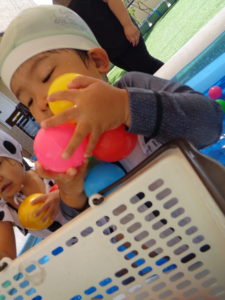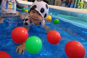 プールから、ボールを沢山集めて、隣のプールへぽーん!と投げて遊んたよ!