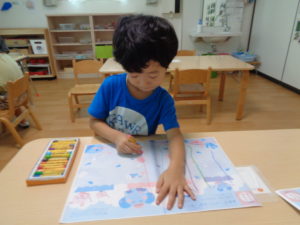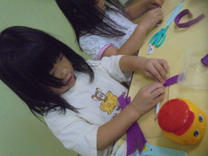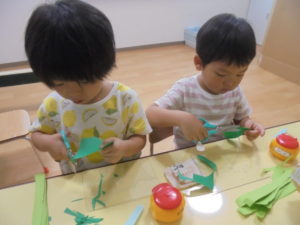 4歳児さんはハサミやのりを使っての制作です。