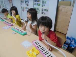 にじ組4歳児さんは、鍵盤ハーモニカをしました。