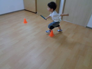 バトンの練習、始めは難しかったけど、何回か練習するうちにコツを掴んできたようです。