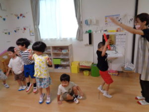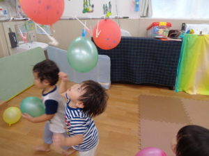 風船遊びをしたり、みんな汗だくになって夢中であそんでいました。