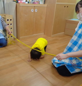 長縄を跳んだりくぐったり体もたくさん動かしました。