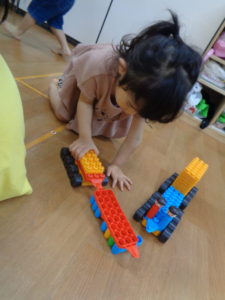 初めてのブロック夢中で遊んでました。
