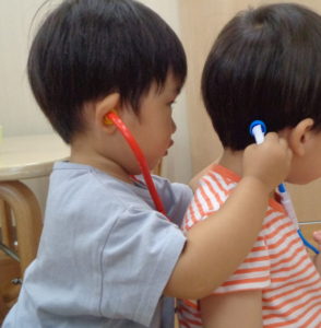 ふたばぐみさんは、おままごとやお医者さん、パズルで遊びました。