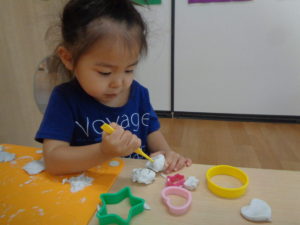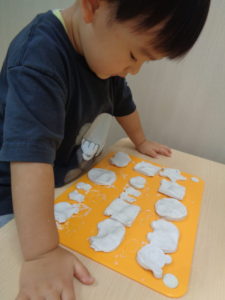 恐竜のたまご!といって丸めたりして、様々な発想がおもしろいです☆