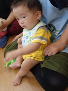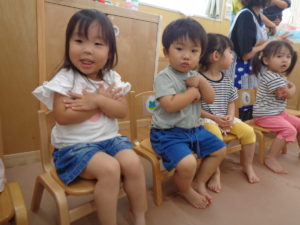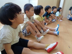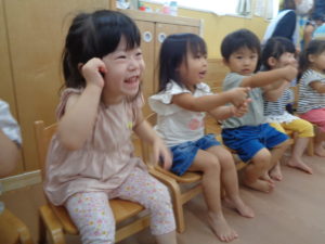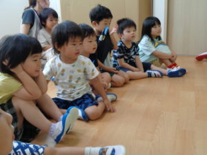 ジョー先生の動きや動物の鳴きまねを興味深く聞いて、