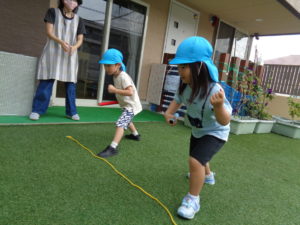 その後は、園庭でリレーの練習をしました。