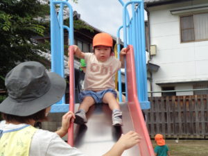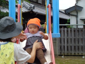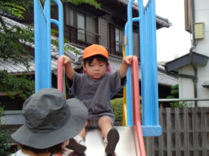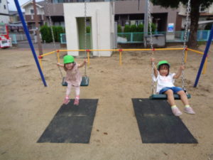 公園では、みかん組さんと一緒に滑り台、ブランコ、