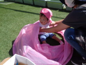 もも組さんは園庭で運動会の練習をしたり、トンネルくぐりをしたりして遊びました!
