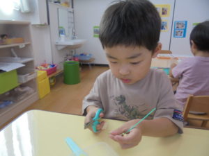 にじ組さんはハサミや絵の具を使っての制作をしました✂