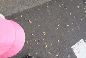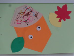 落ちている葉っぱを保育者が「葉っぱだね」と言うと、指さししながら「はっぱ」と言ってとっても可愛いかったです(^○^)