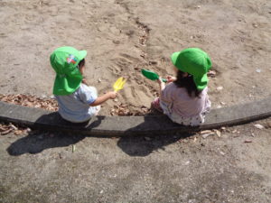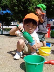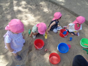 砂を手で握ったり、バケツに砂を入れたり夢中で遊んでいましたよ😆