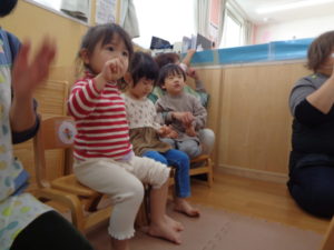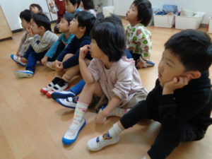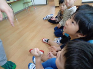 今日は、もも、みかん、ふたば組さんと、にじ組さんに分かれて英語がありました♬