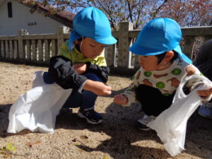 にじ組さんは、近くの神社へ行き、どんぐりを見つけに行きました!