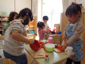 ふたば組さんは、お弁当を作ったり、お友だちと一緒におままごとをしたり、