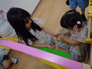 その後は、お部屋で好きな遊びをして楽しみました。5歳児さんにはままごとが大人気でした。