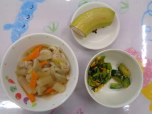 ・けんちんうどん、小松菜とコーンの和え物、バナナでした。