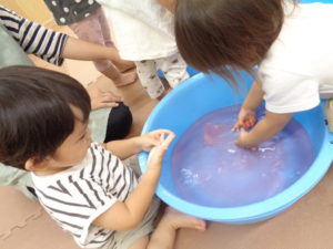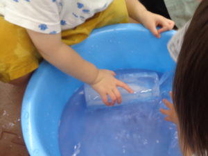 そして容器で氷や水をすくったり うつしたり 運んだりとお部屋の中でも涼を感じながら楽しみました♪