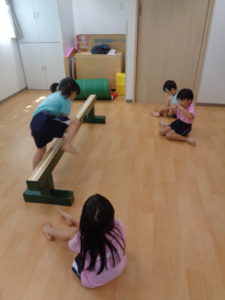 体操教室は休みでしたが、保育者と一緒に鉄棒と平均台に挑戦しましたよ。