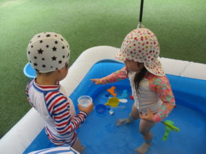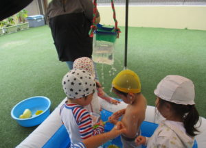 毎日暑い日が続いていますが、ふたば組のお友だちは、暑さに負けず今日も元気いっぱいです!!