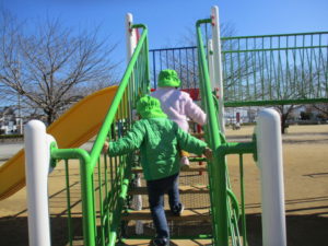 公園に到着すると、大きな通具に大喜び!