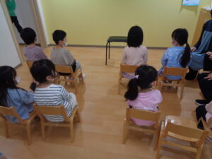 先生のお話をよく聞いて、立つ練習、お辞儀、歌などよく頑張っていました。