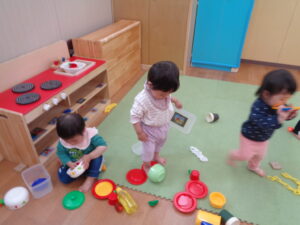 その他の子どもたちはお友だちを待っている間、大好きなおままごとをして遊んでいます♬