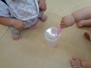 入れることができたら手をたたいて嬉しそうな子どもたち🐰💜