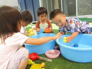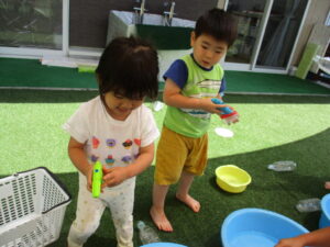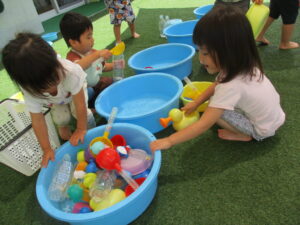 給食の時間になっても「水遊び楽しかったね」「またしたいな」とお話してくれるのでとても嬉しいです。