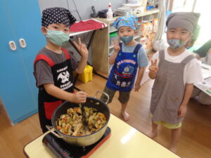 7月のクッキングは、夏野菜をたっぷり使ったカレー作りをしました(^O^)