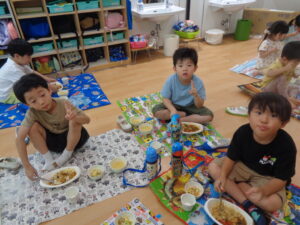 『カレーおいしい!!』『このカレー、100杯は食べれる!!』『ぜーんぶすっごくおいしい!!』など、友だちと会話を楽しみながら味わっていました(^O^)