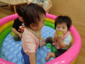 それでも怖くてやめてしまうことはなく、最後まで遊んでいました。中には割れた風船のゴミを拾って保育者に渡してくれました!すごい!