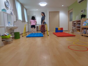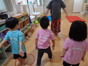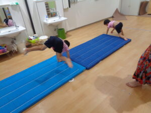 にじ組さんは体操教室がありました。運動会に向けて様々な運動にチャレンジしています。