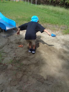 夏は暑くて全然遊びに来れなかった公園。久しぶりの公園で子どもたちもうきうきしていました。公園では、砂場で山を作ったり虫を探したりしていました。
