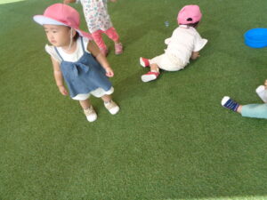 シャボン玉の方をじーっと見たり、手を伸ばしたり、追いかけたりと可愛い姿が見られました。