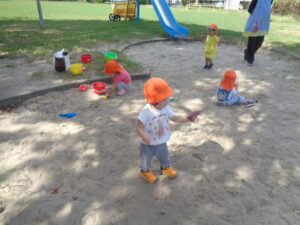 さて、今日のみかん組さんは公園で遊びましたよ。