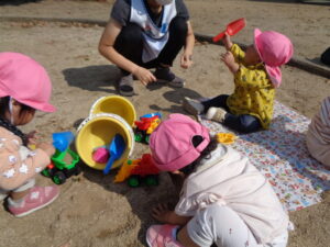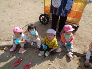 遊んだ後は、しっかり水分補給もしました。コップのみもとっても上手になってきました。