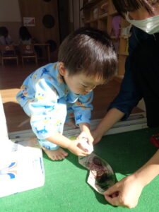 霧吹きも自分でやってみたふたば組さん。楽しかったようで、「まだやる」とまた机に向かう姿がありました。